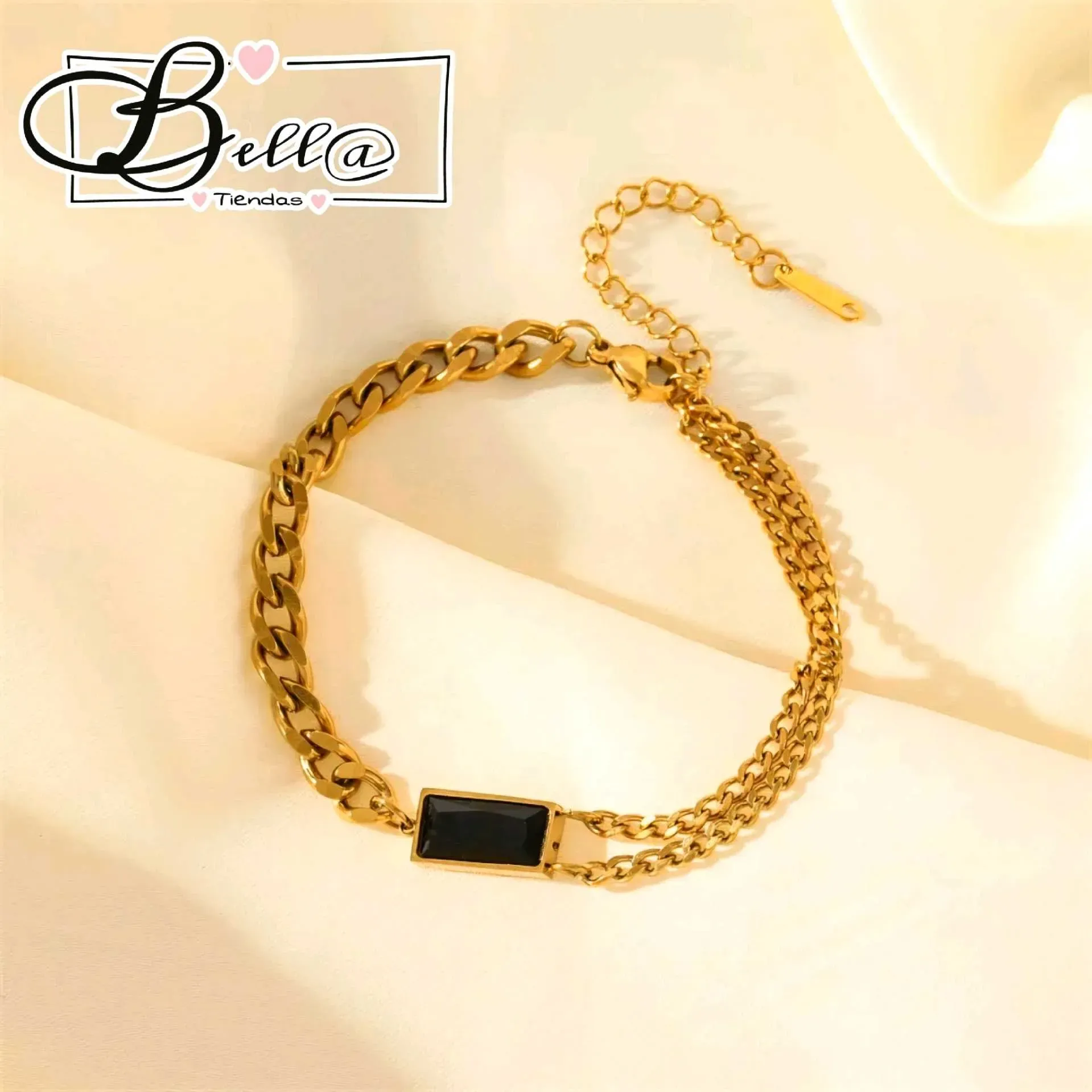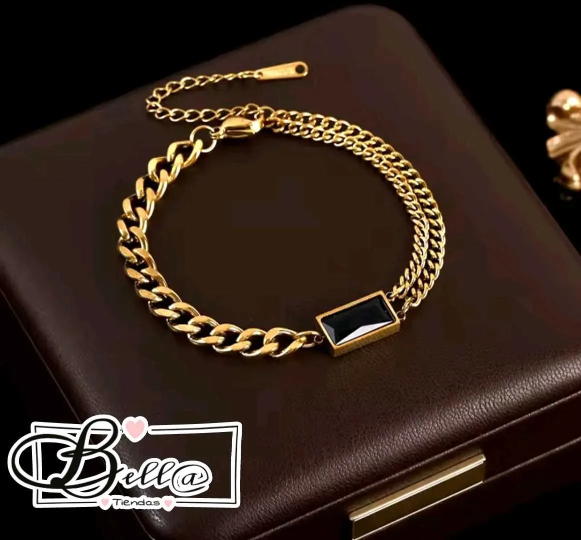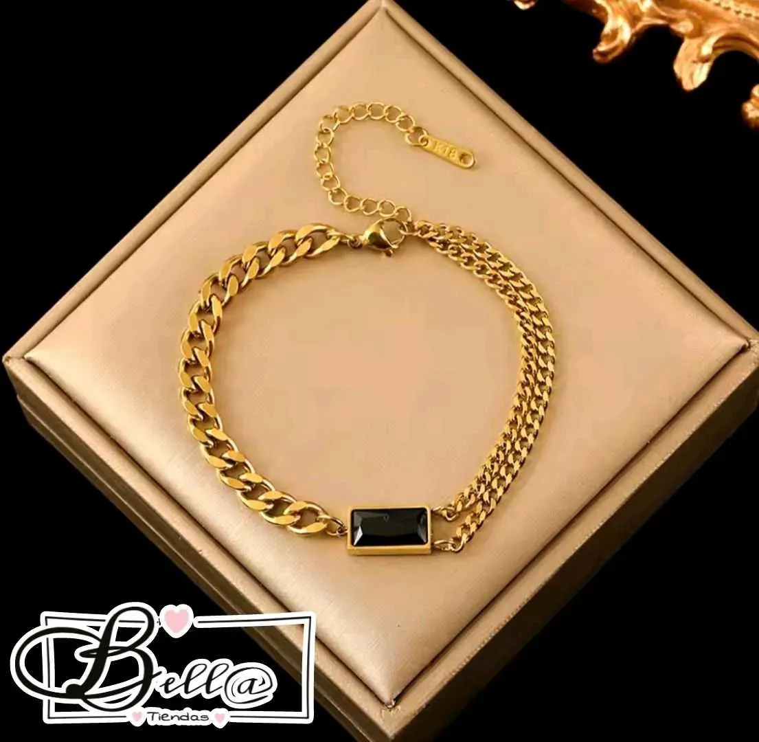Pulsera Semi-Doble dije Placa Negra 🖤✨️