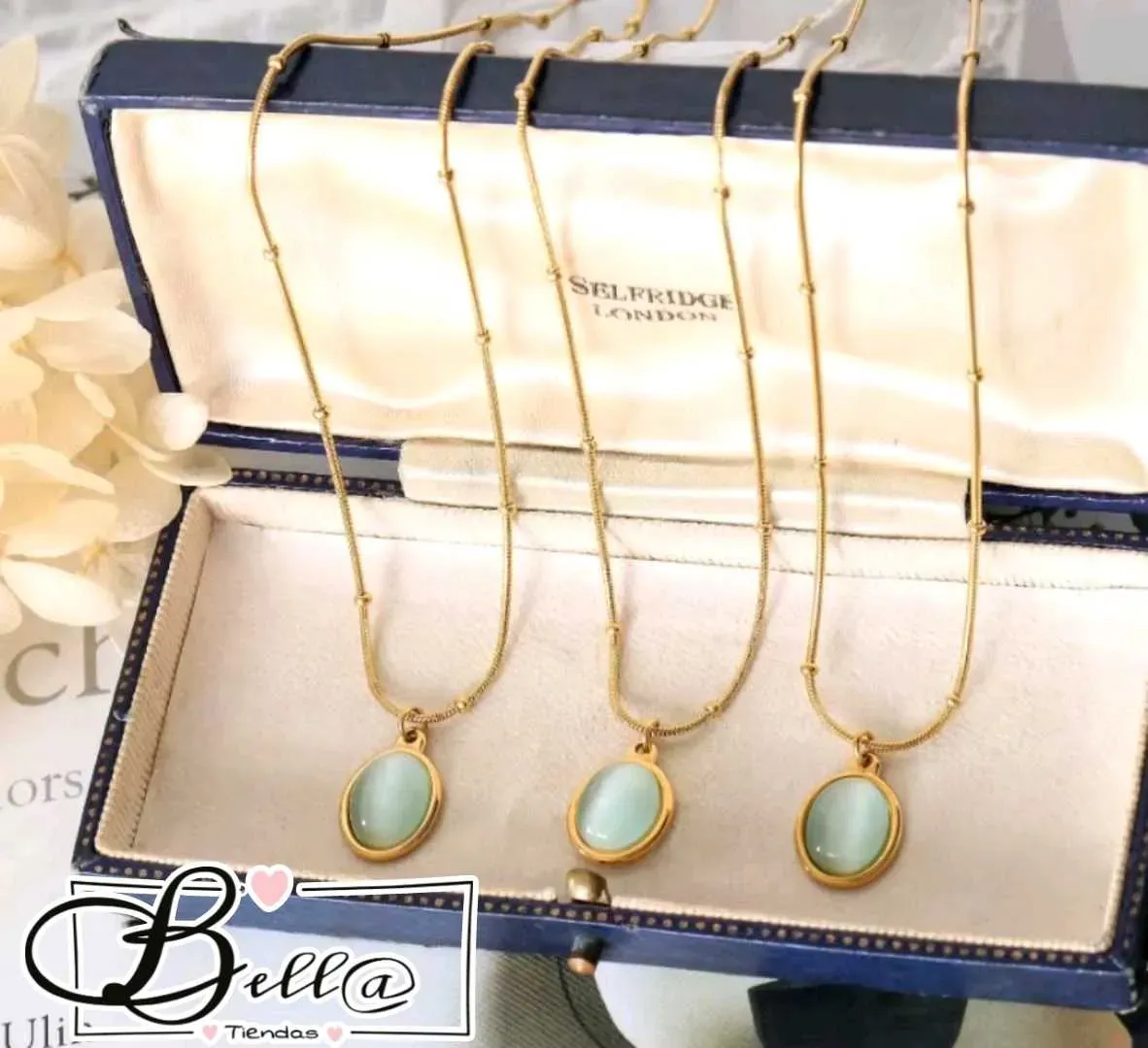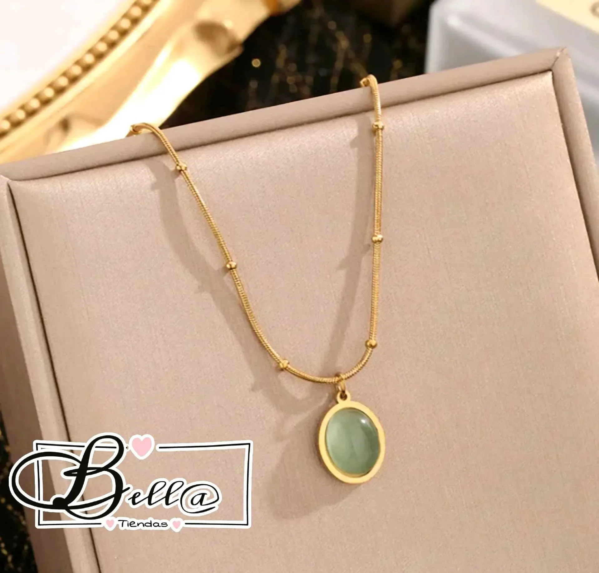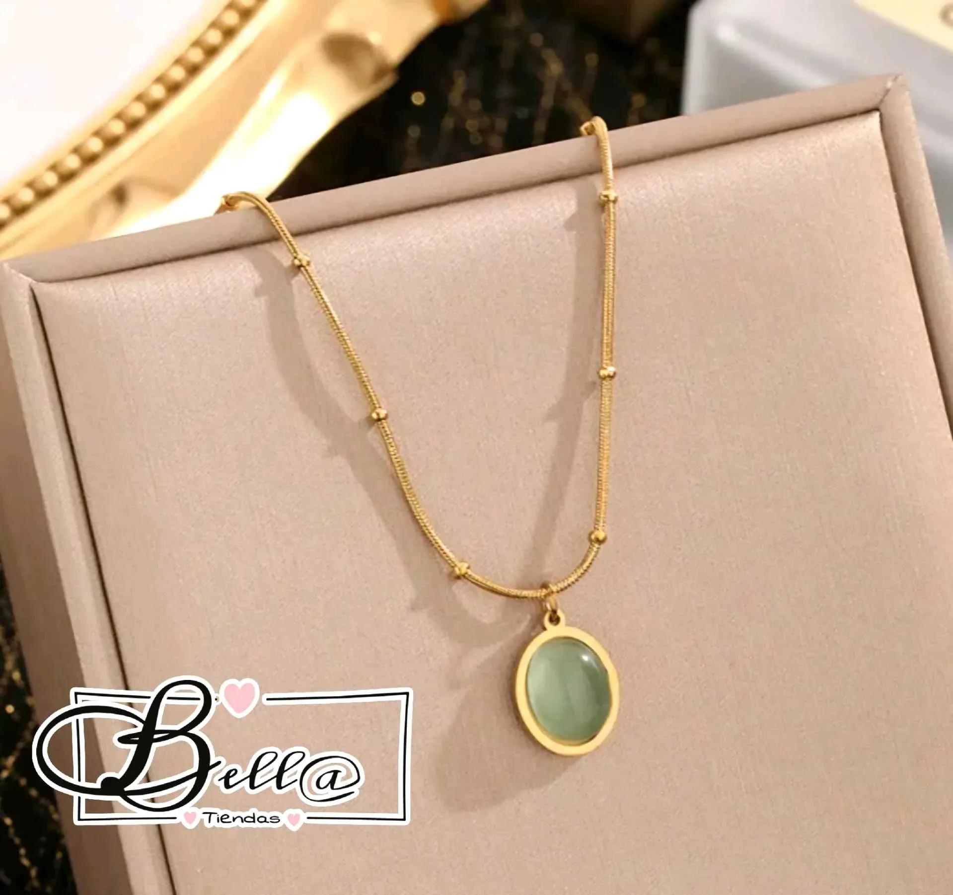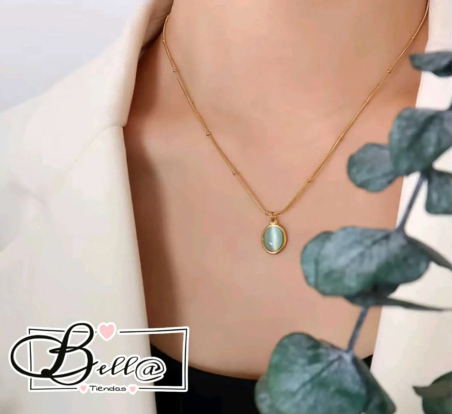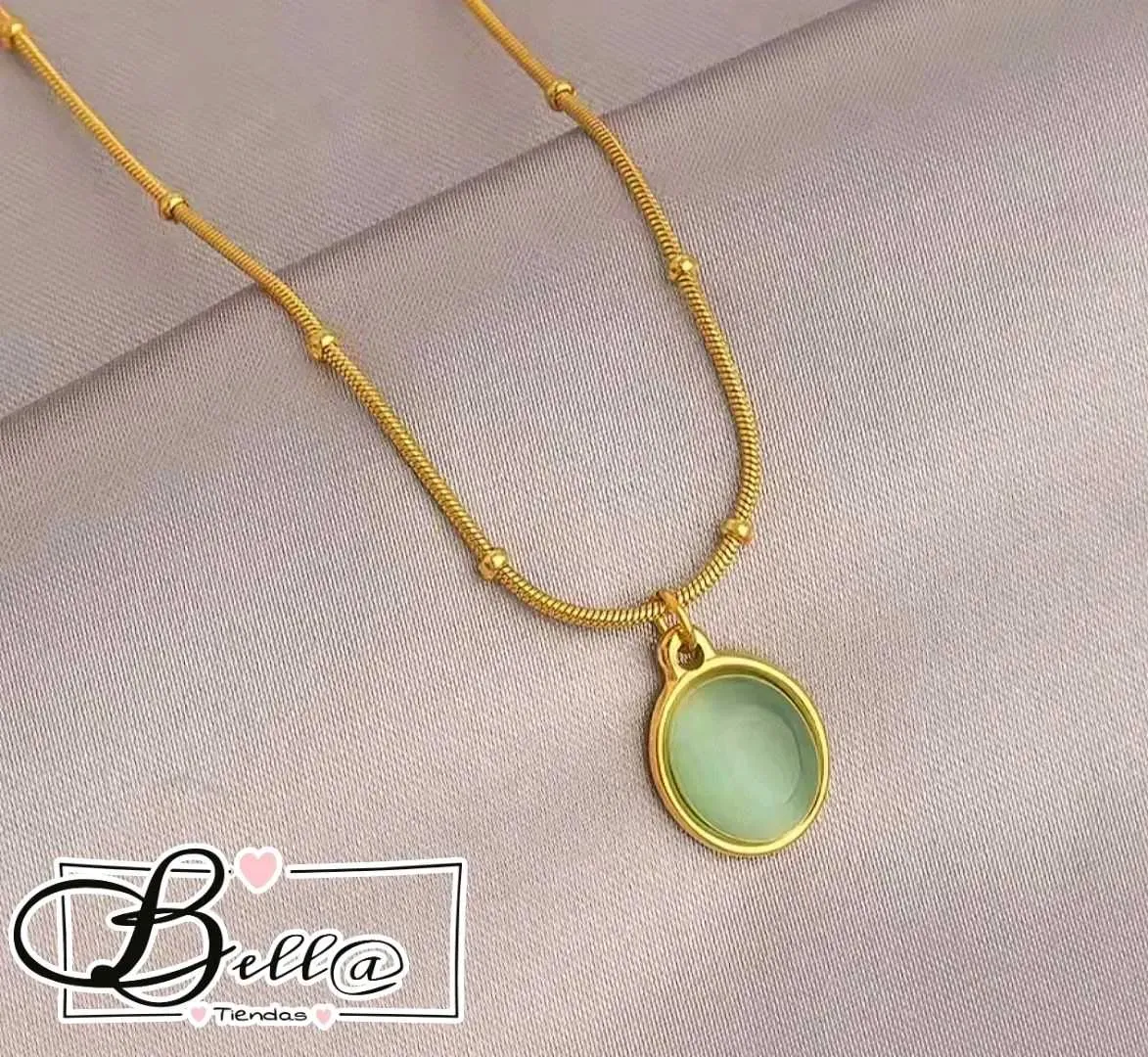 Collar delicado con Mini Balines y dije Verde Azulado 🩵💚
