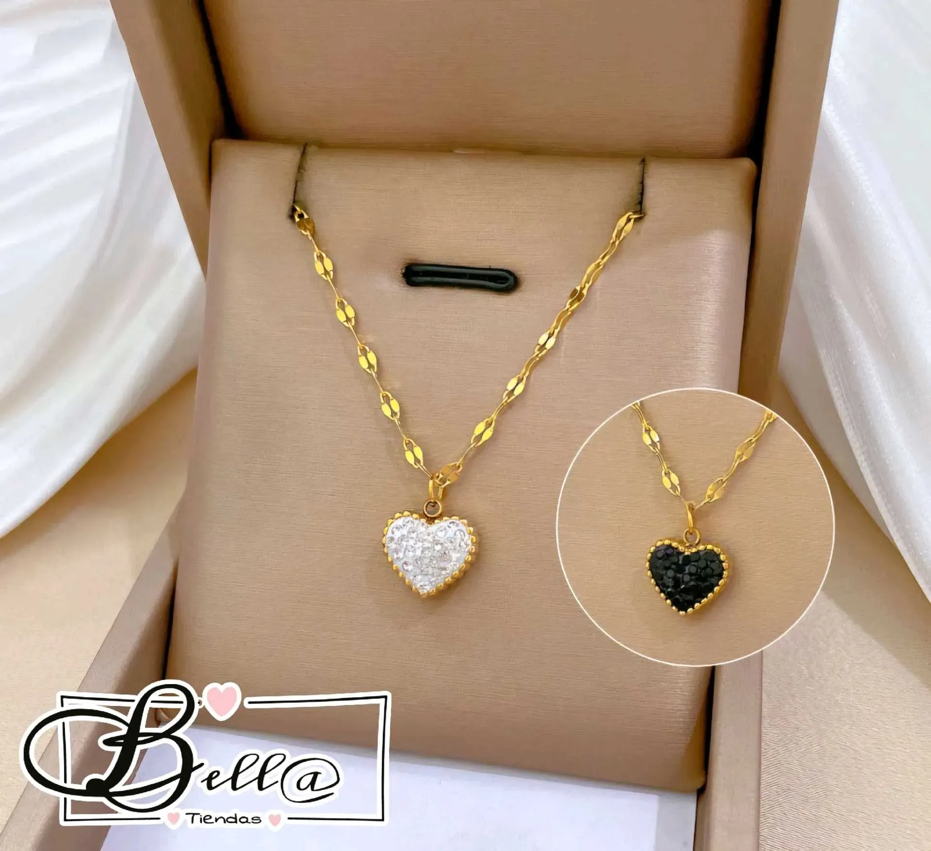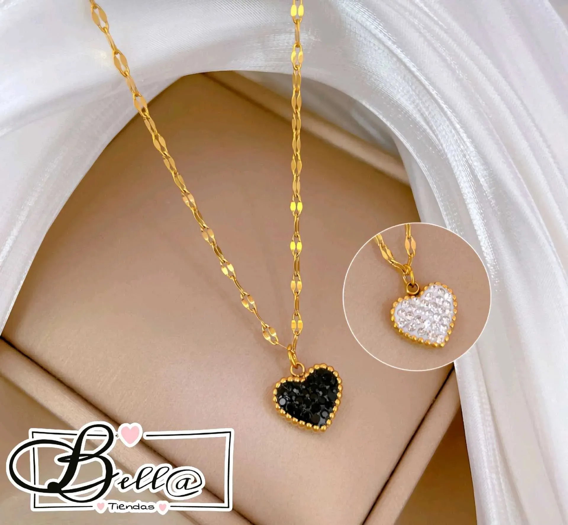 Collar dije Corazón con Pedrería Reversible 🖤🤍