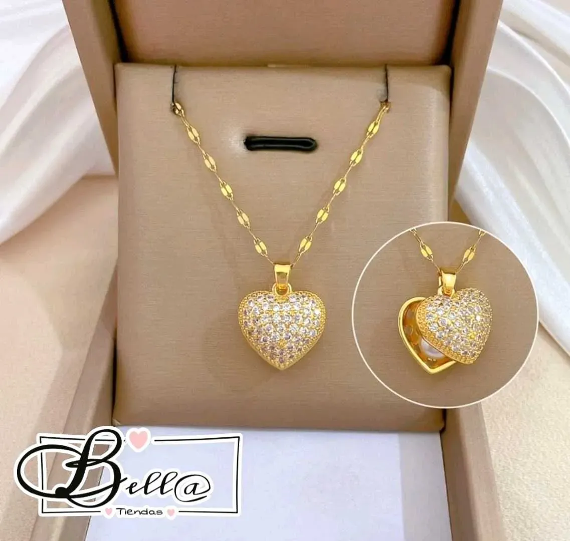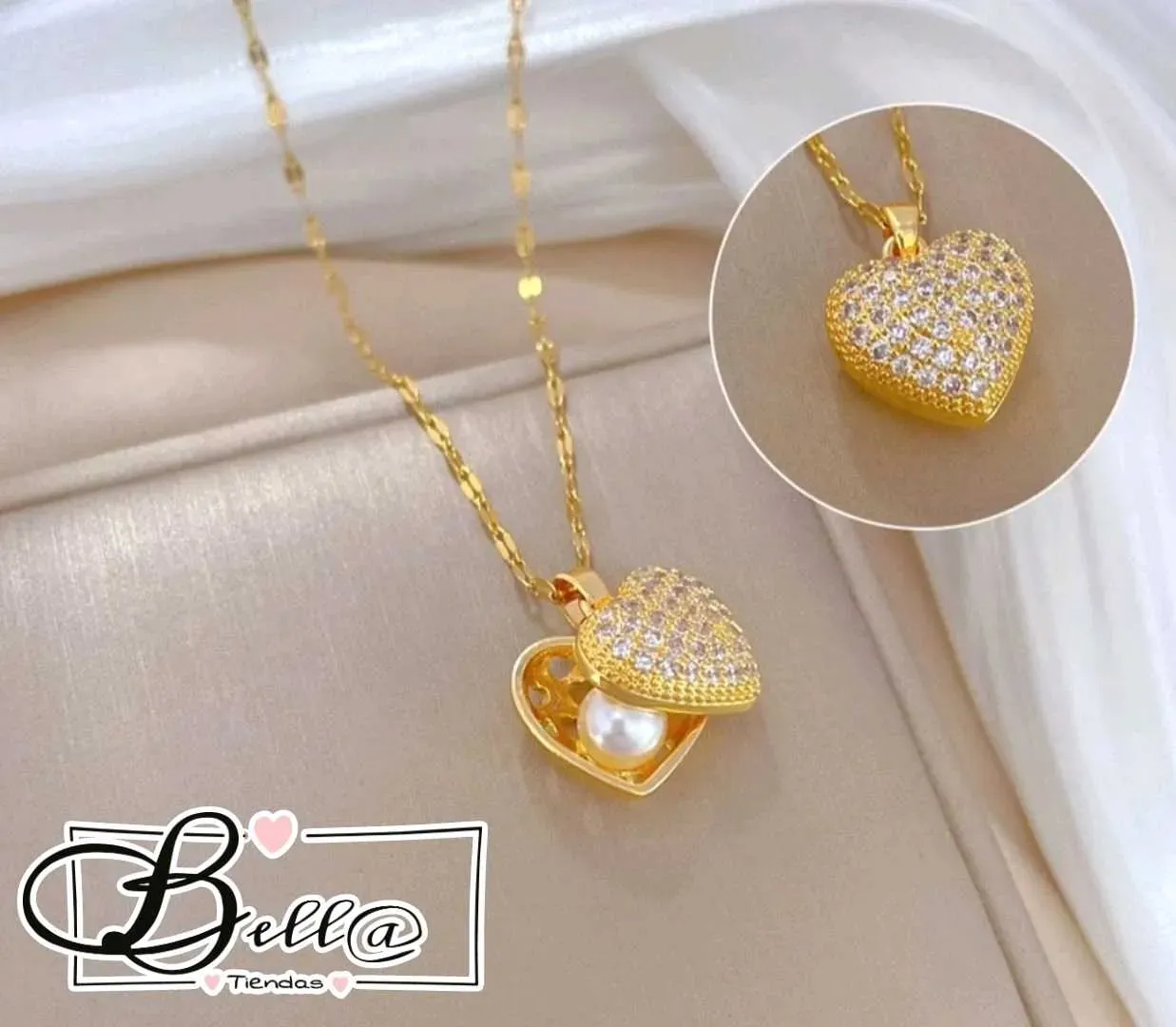 Collar dije Corazón con Perla Interna 💛⚪️✨️