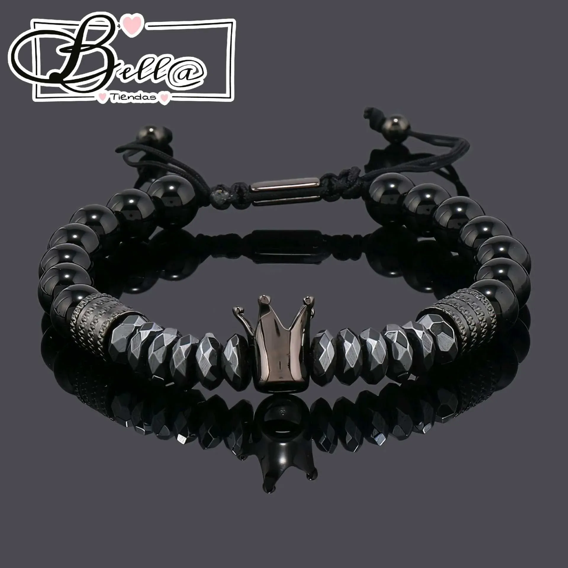 Pulsera de Cuentas Negras Corona Lisa Total Black 🖤