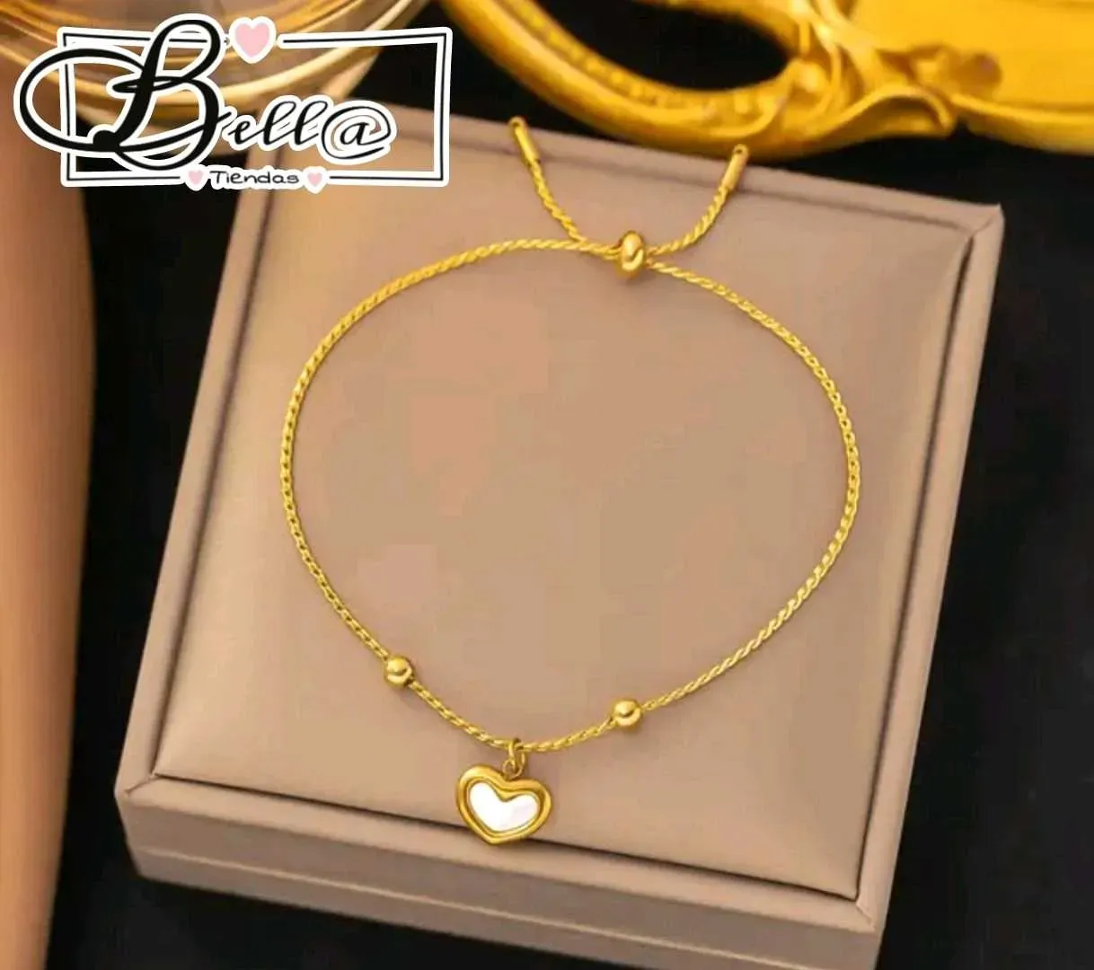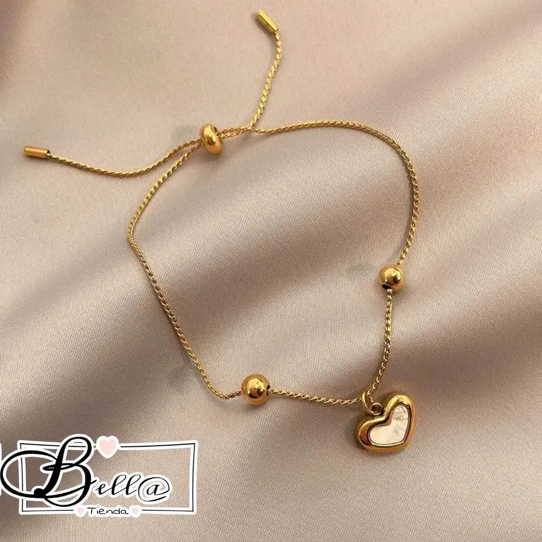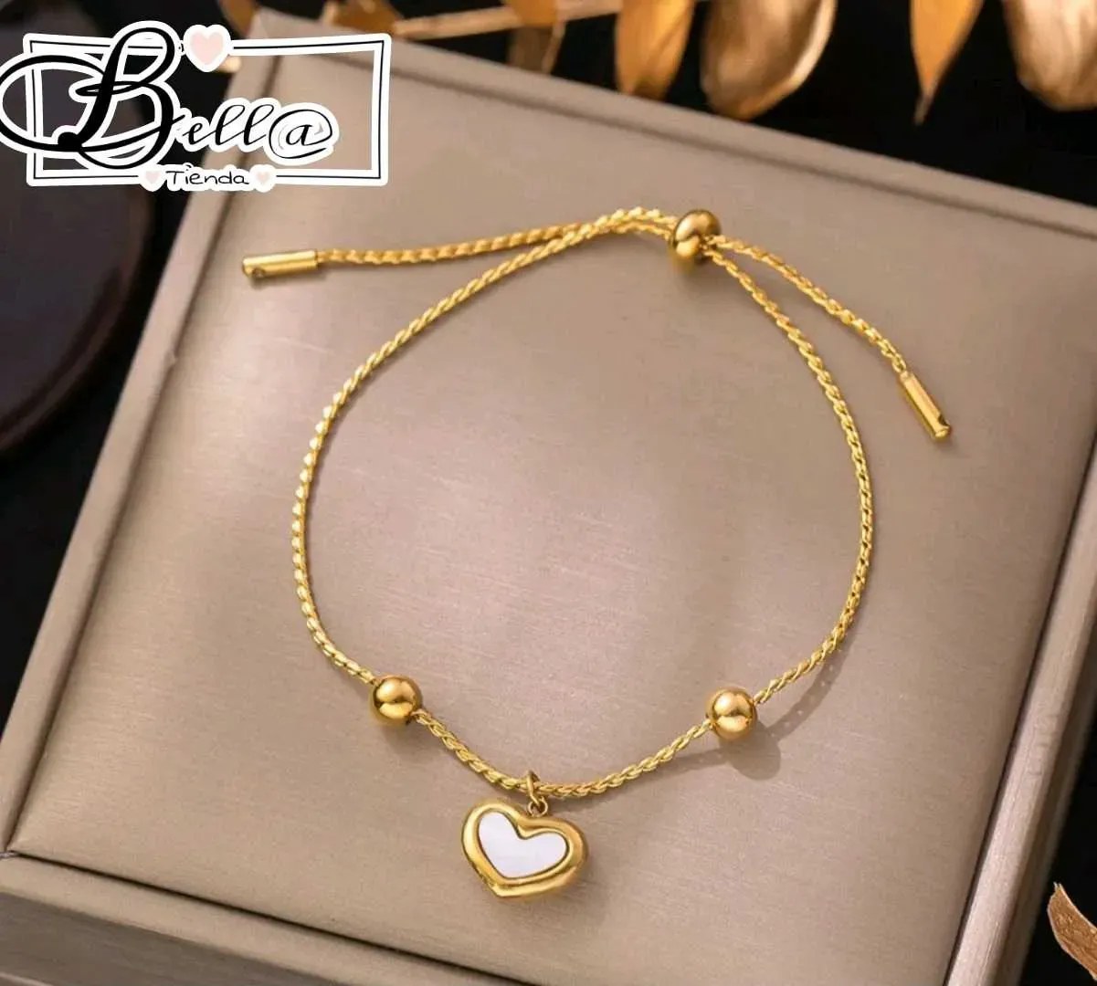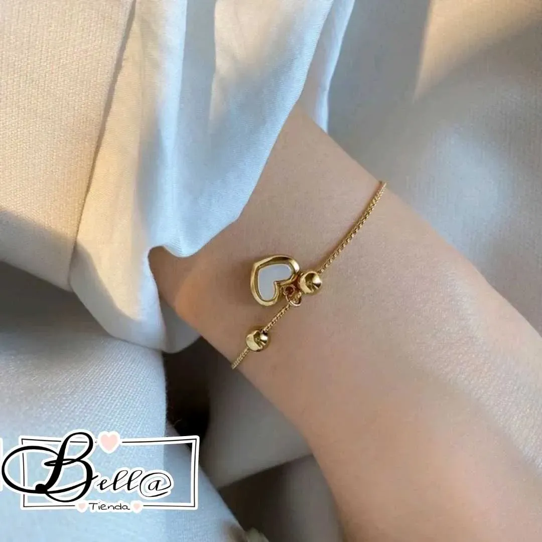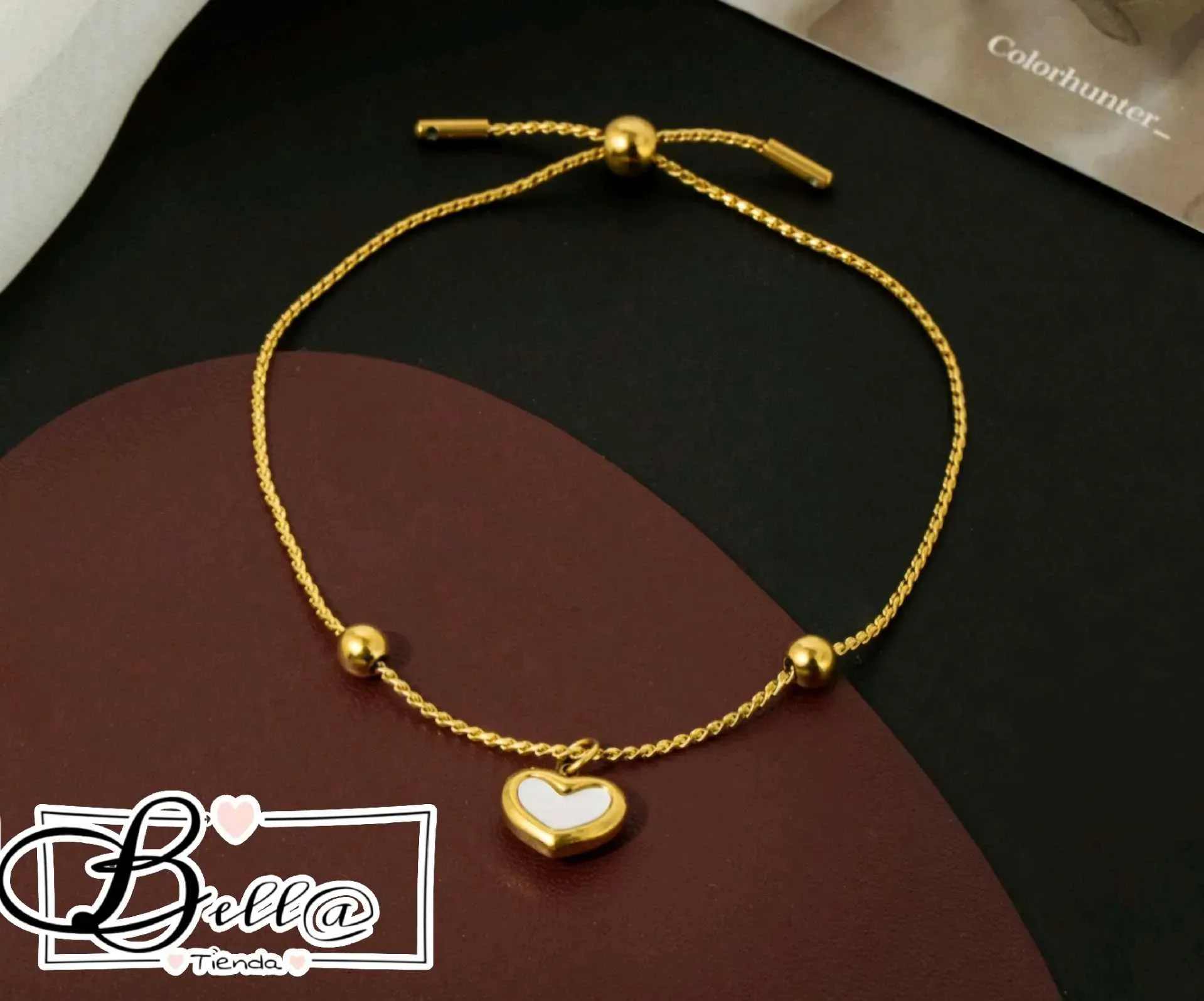 Pulsera Delicada Ajustable dije Corazón Blanco 🤍✨️