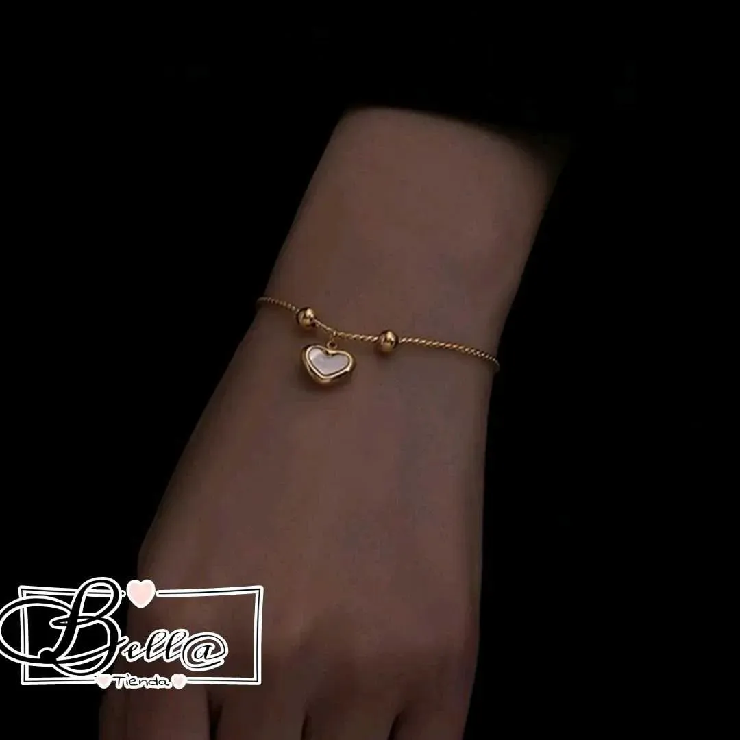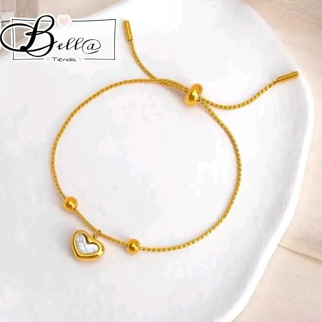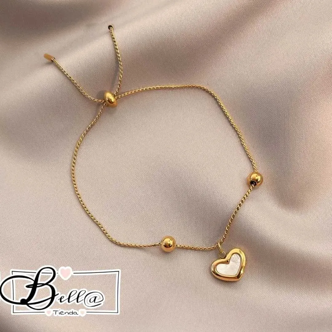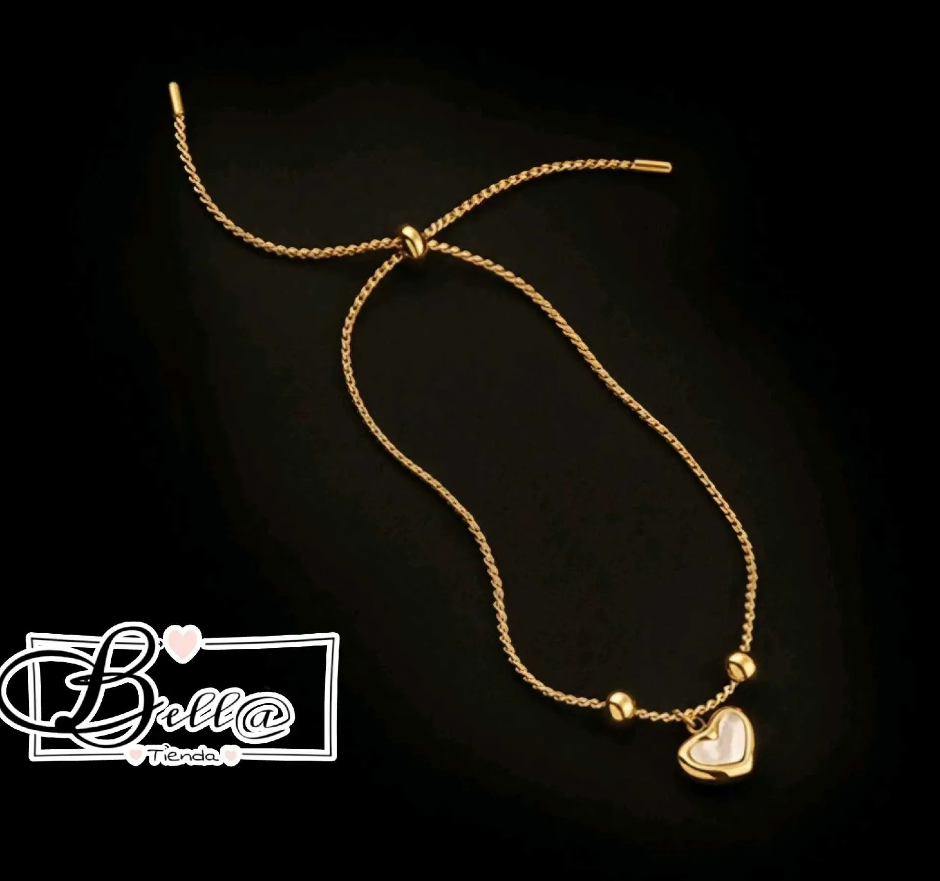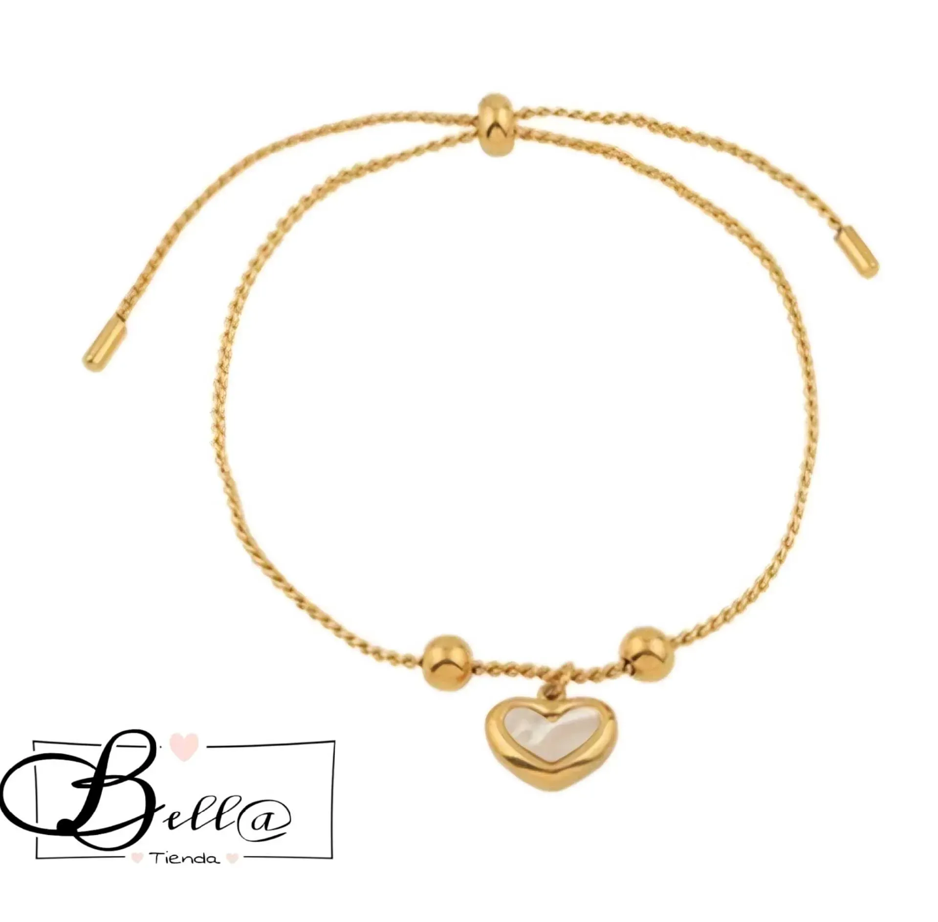 Pulsera Delicada Ajustable dije Corazón Blanco 🤍✨️
