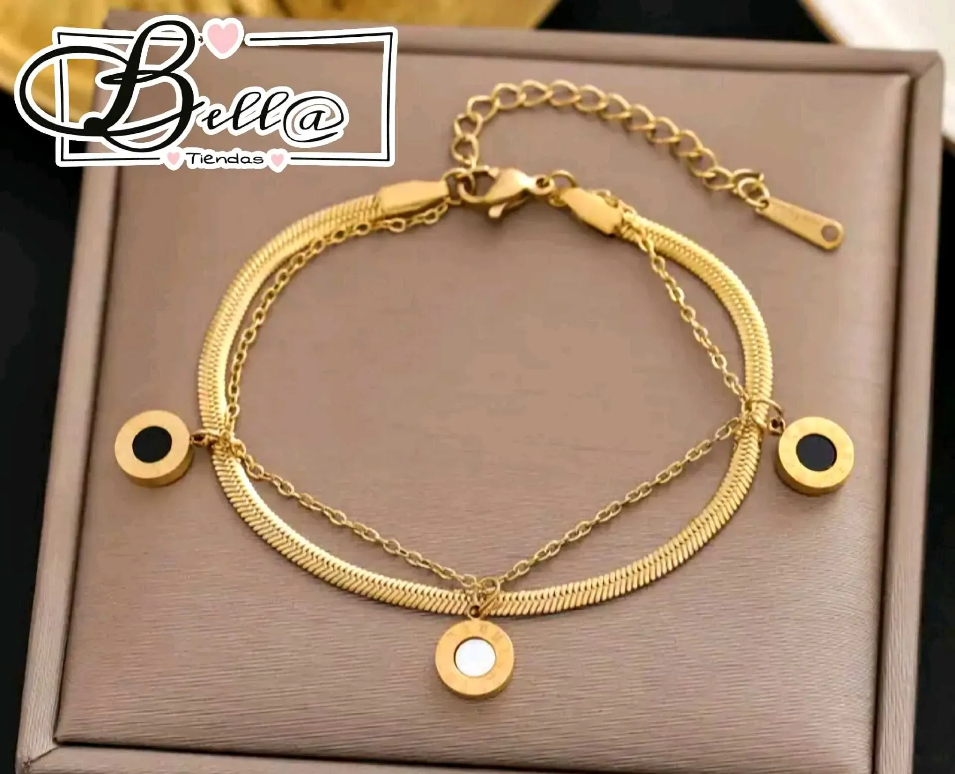 Pulsera Doble Piel de Serpiente dijes tipo Bvlgari ⚫️⚪️