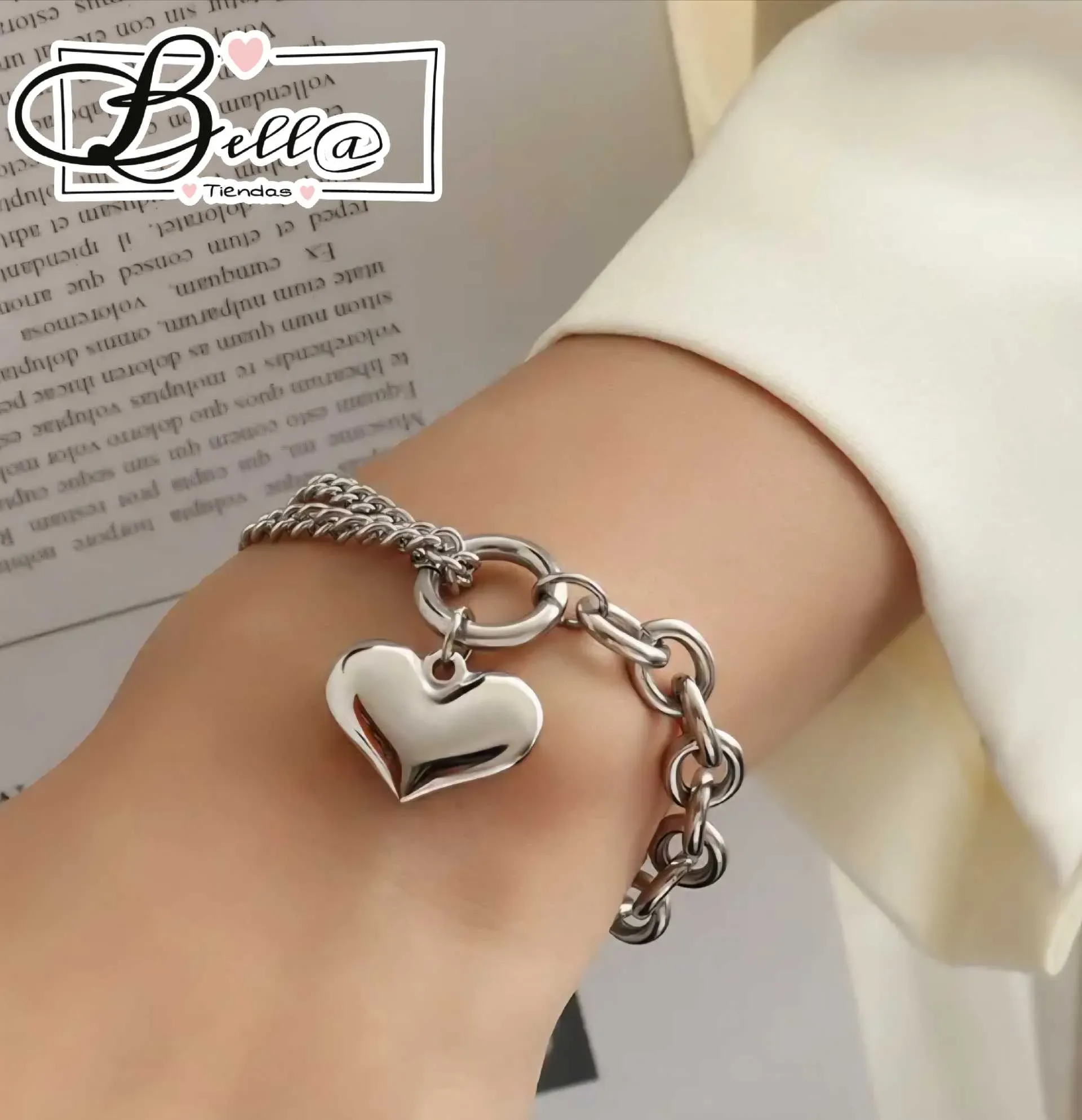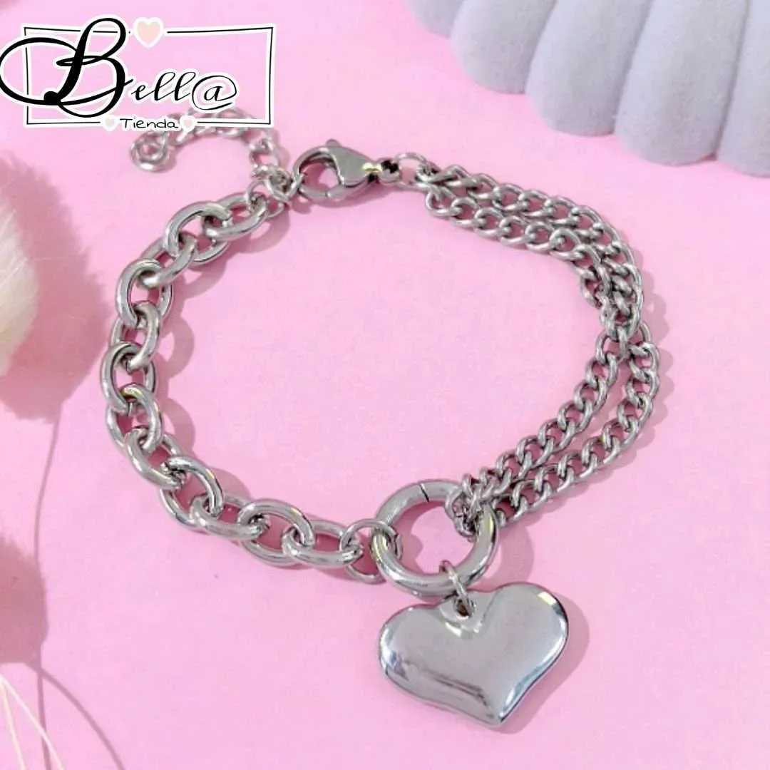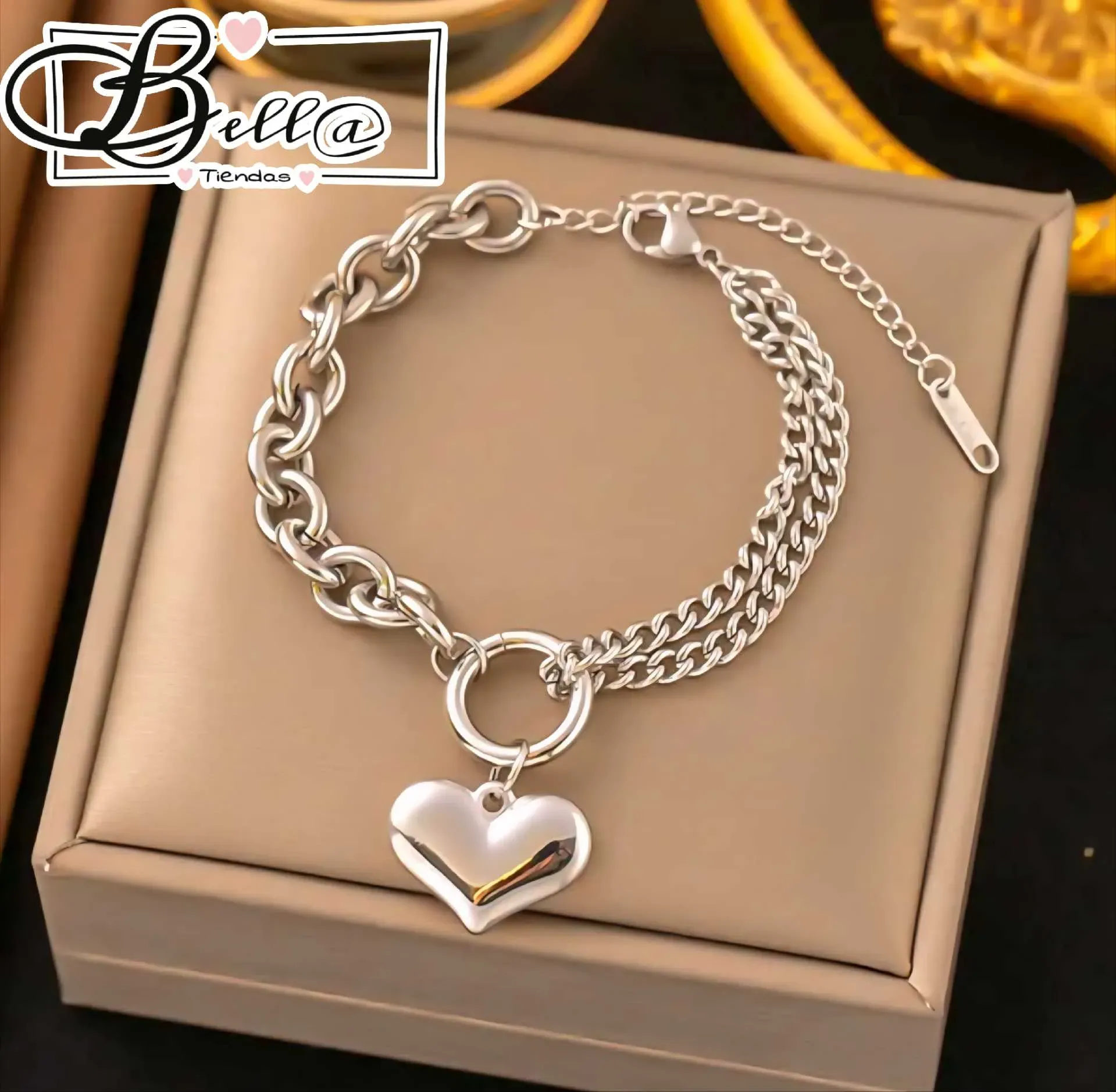 Pulsera Semi-Doble Corazón Chunky 🩶✨️