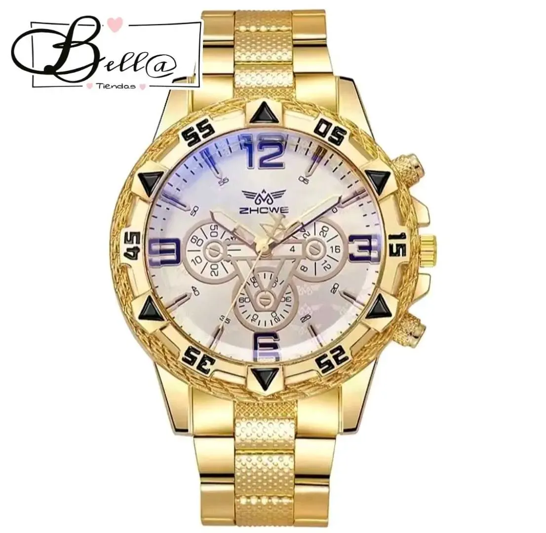 Reloj Dorado Pantalla Cuarzo Blanco 💛🤍