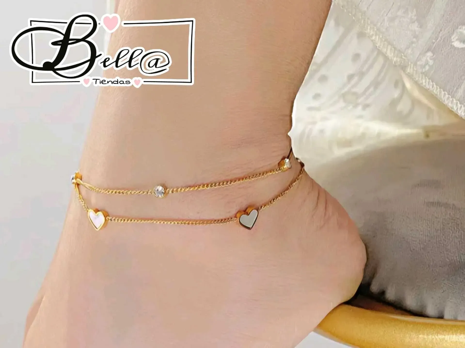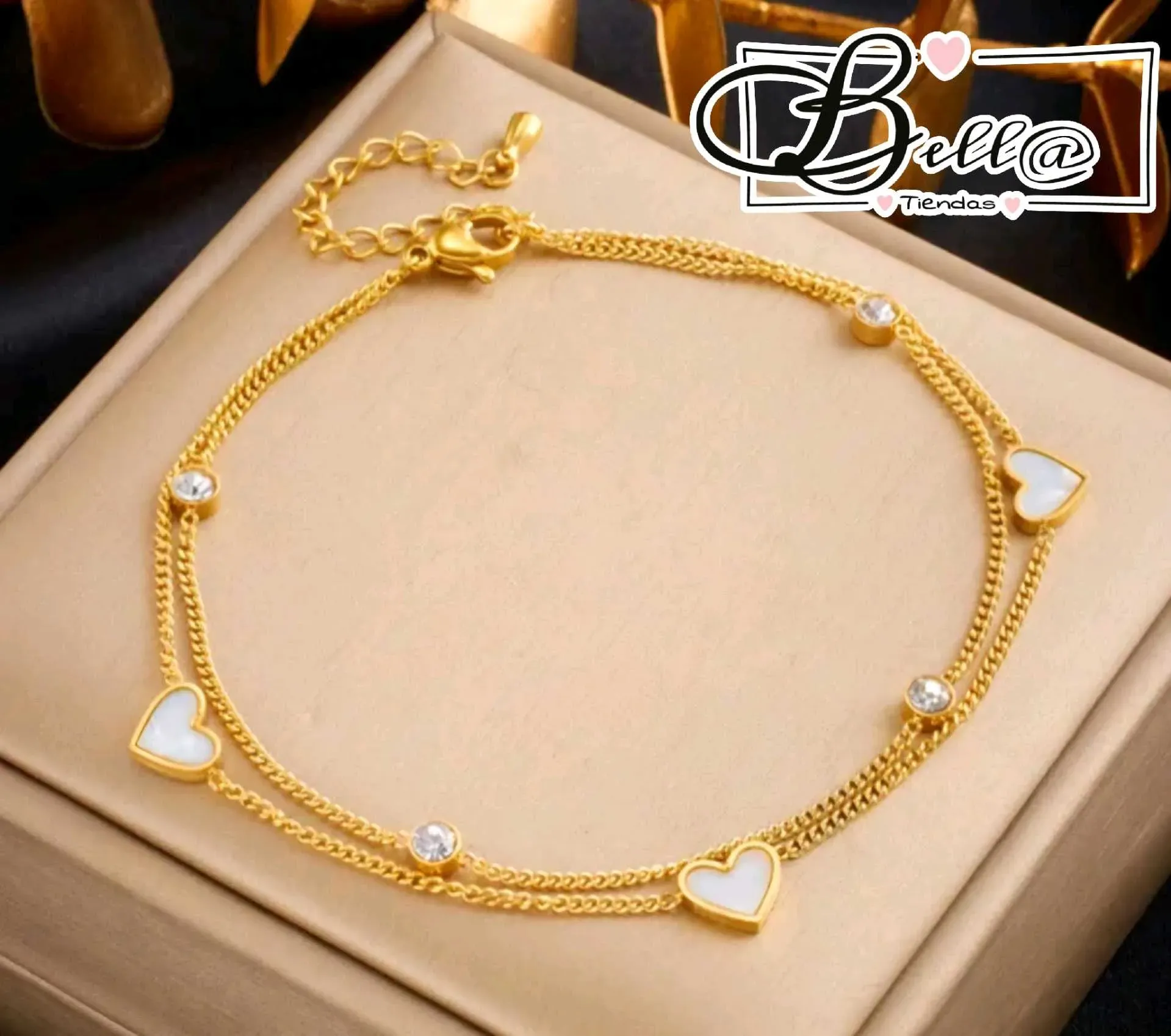 Tobillera Doble dijes Corazones Blancos 🤍✨️