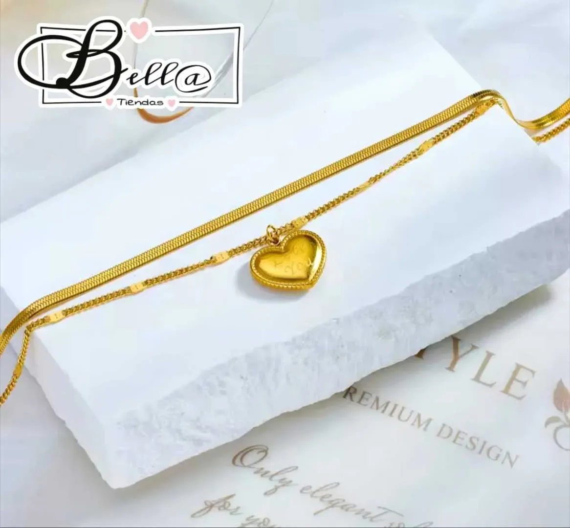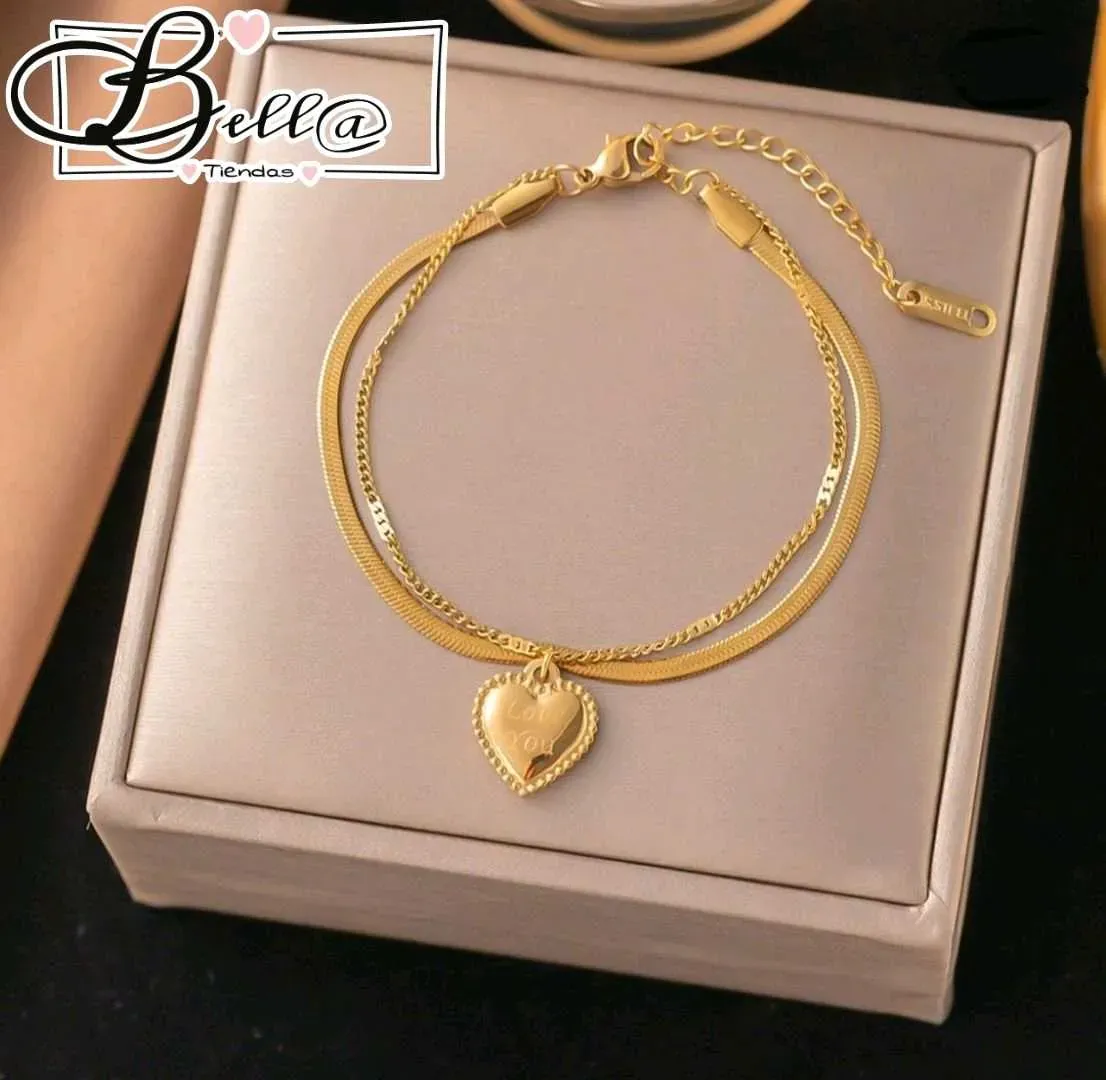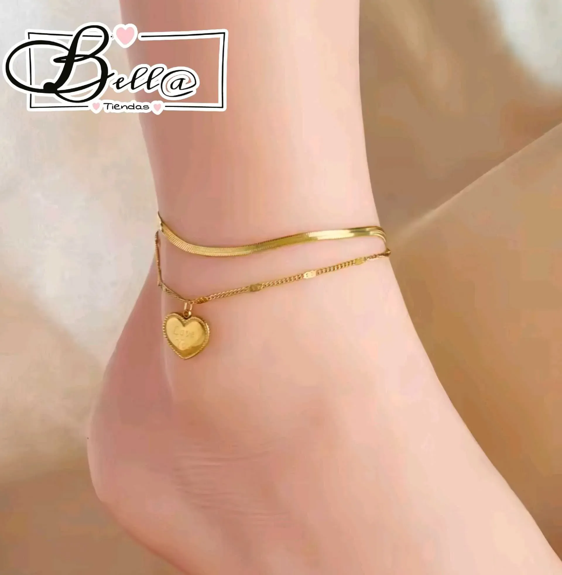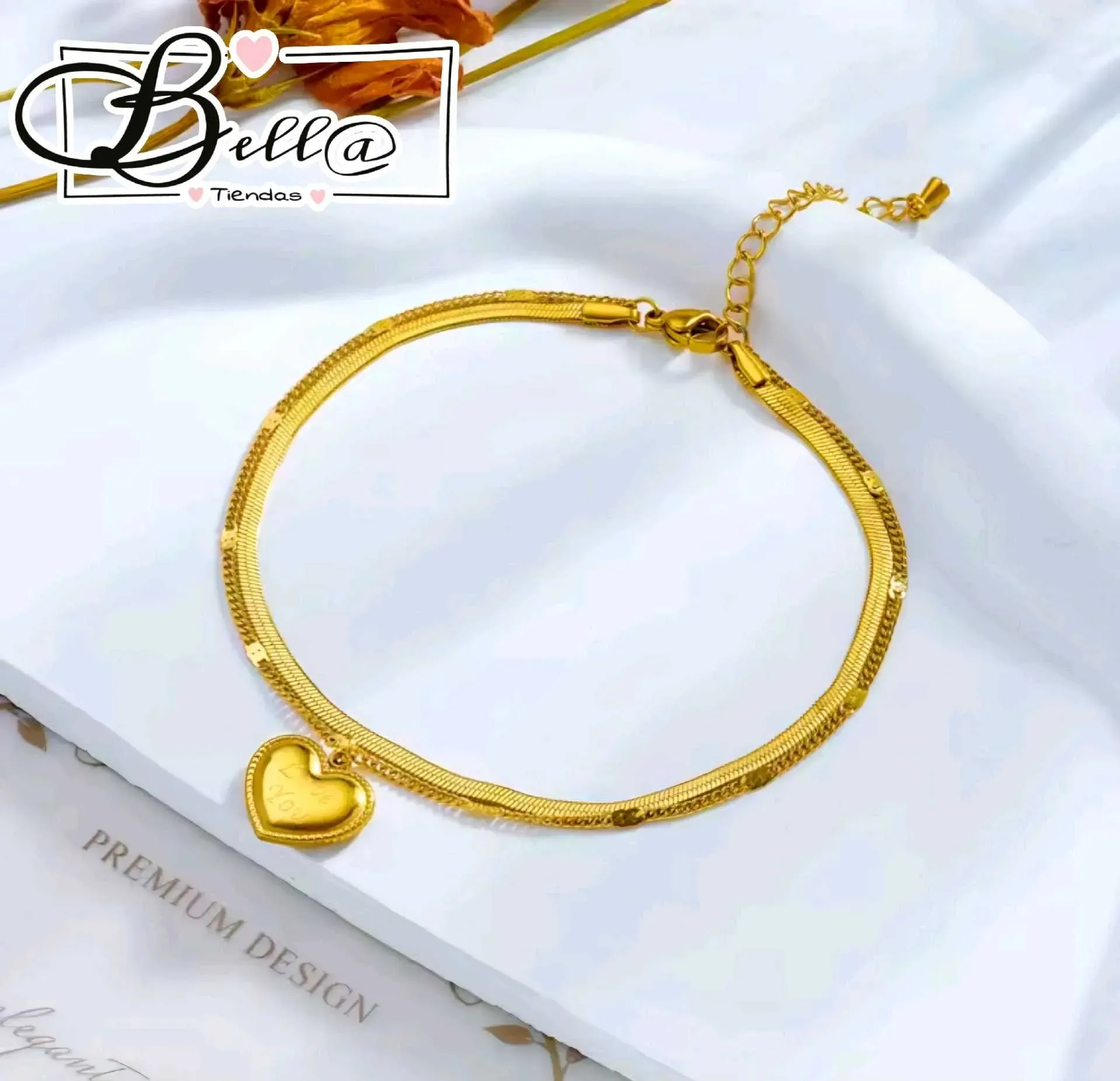 Tobillera Doble Piel de Serpiente dije Corazón 💛✨️