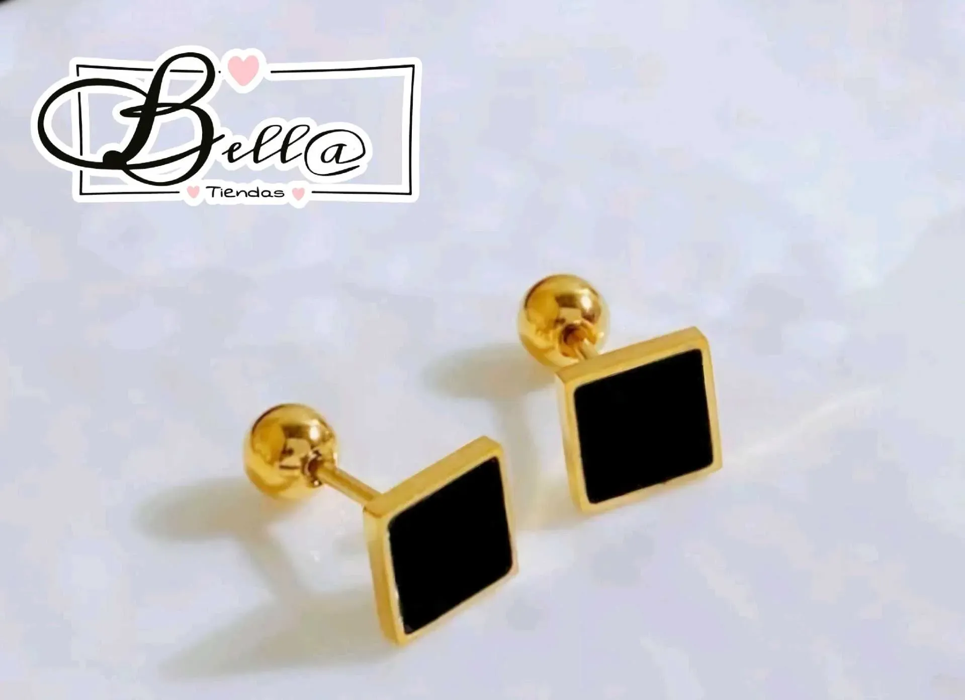 Zarcillos con Cierre de Seguridad Placa Negra ⬛️✨️