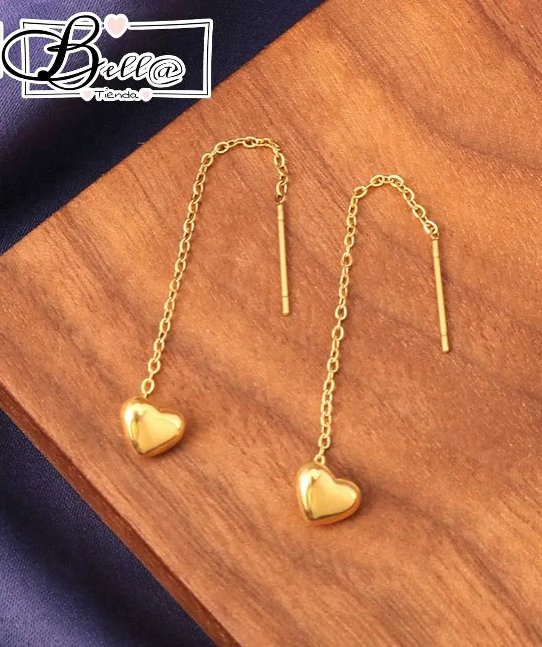 Zarcillos Corazón con Cadena Trasera 💛✨️