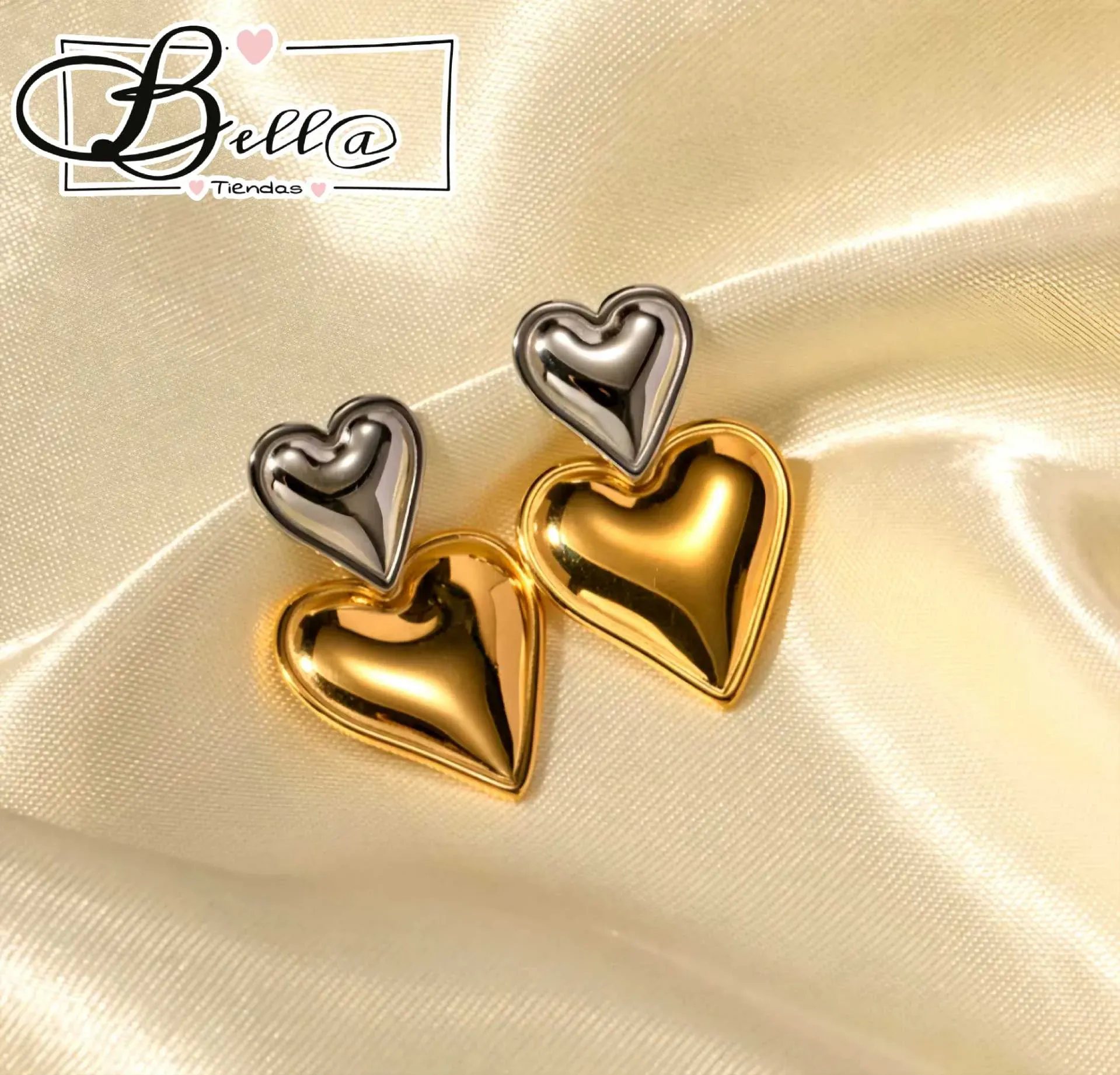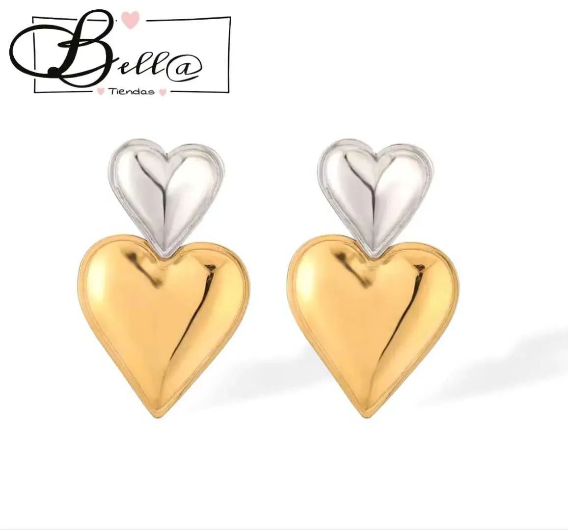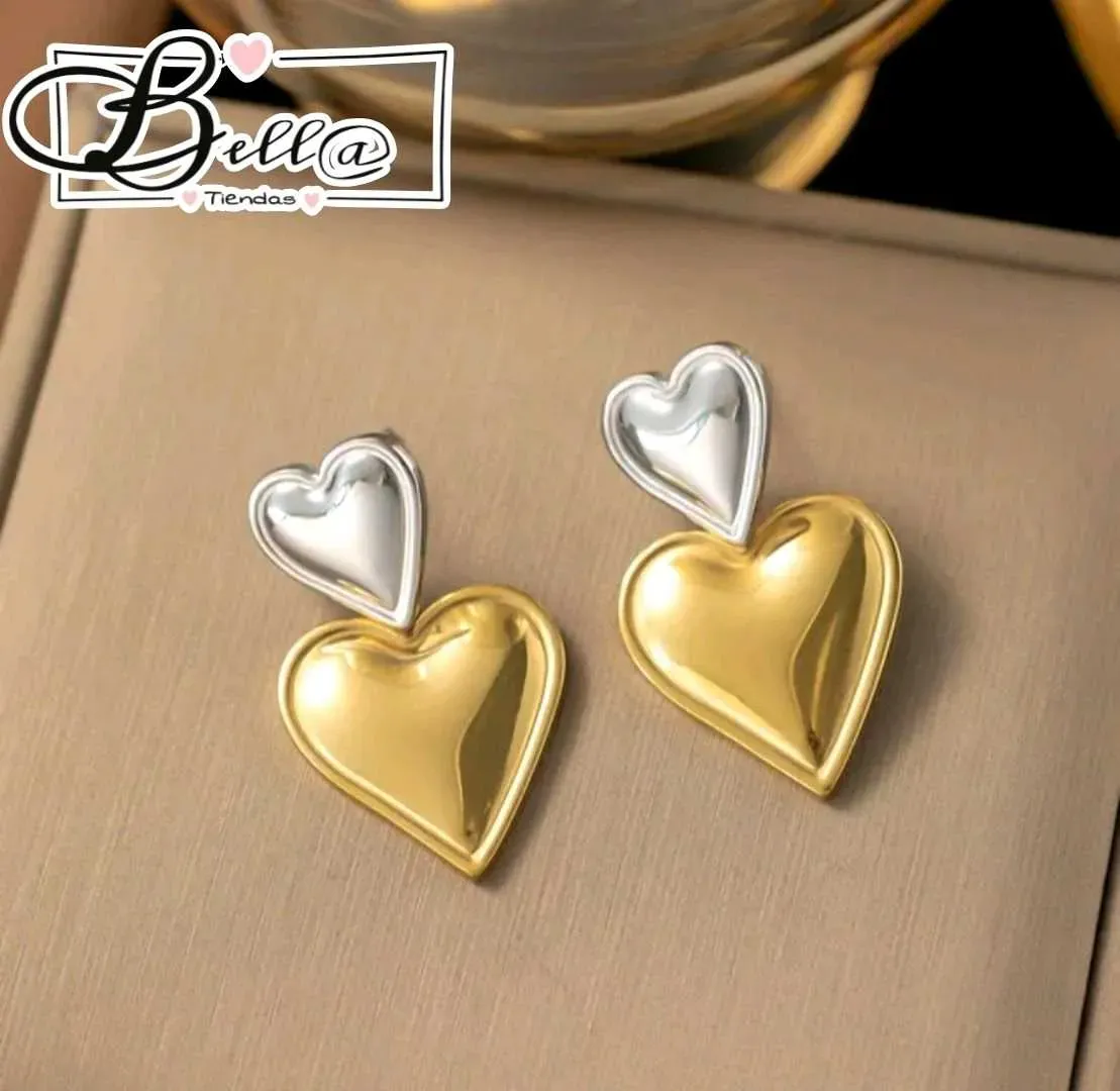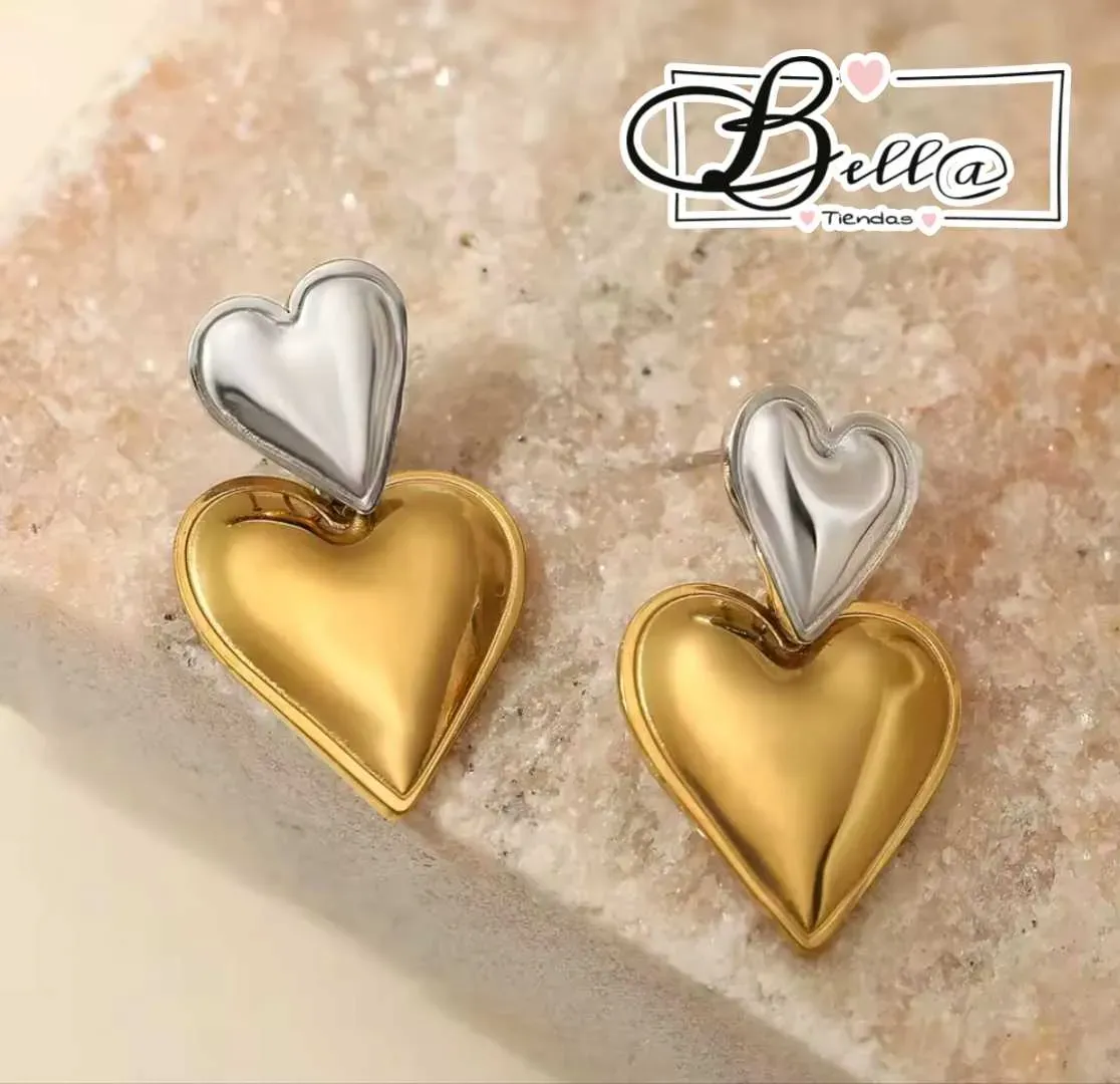 Zarcillos dos Tonos dos Corazones 🤍💛✨️