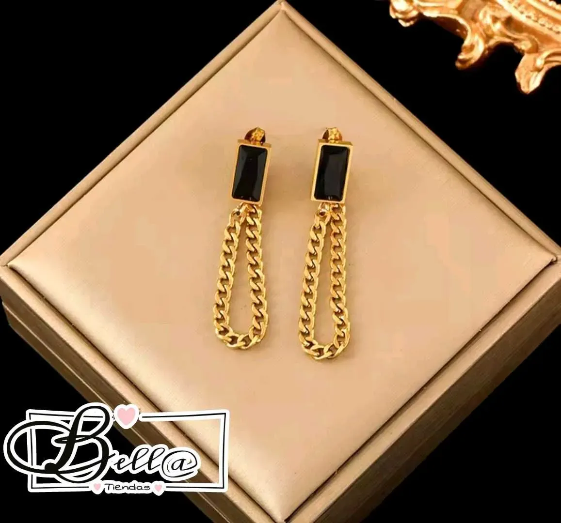 Zarcillos Placa Negra y Cadenita al Cierre 🖤✨️