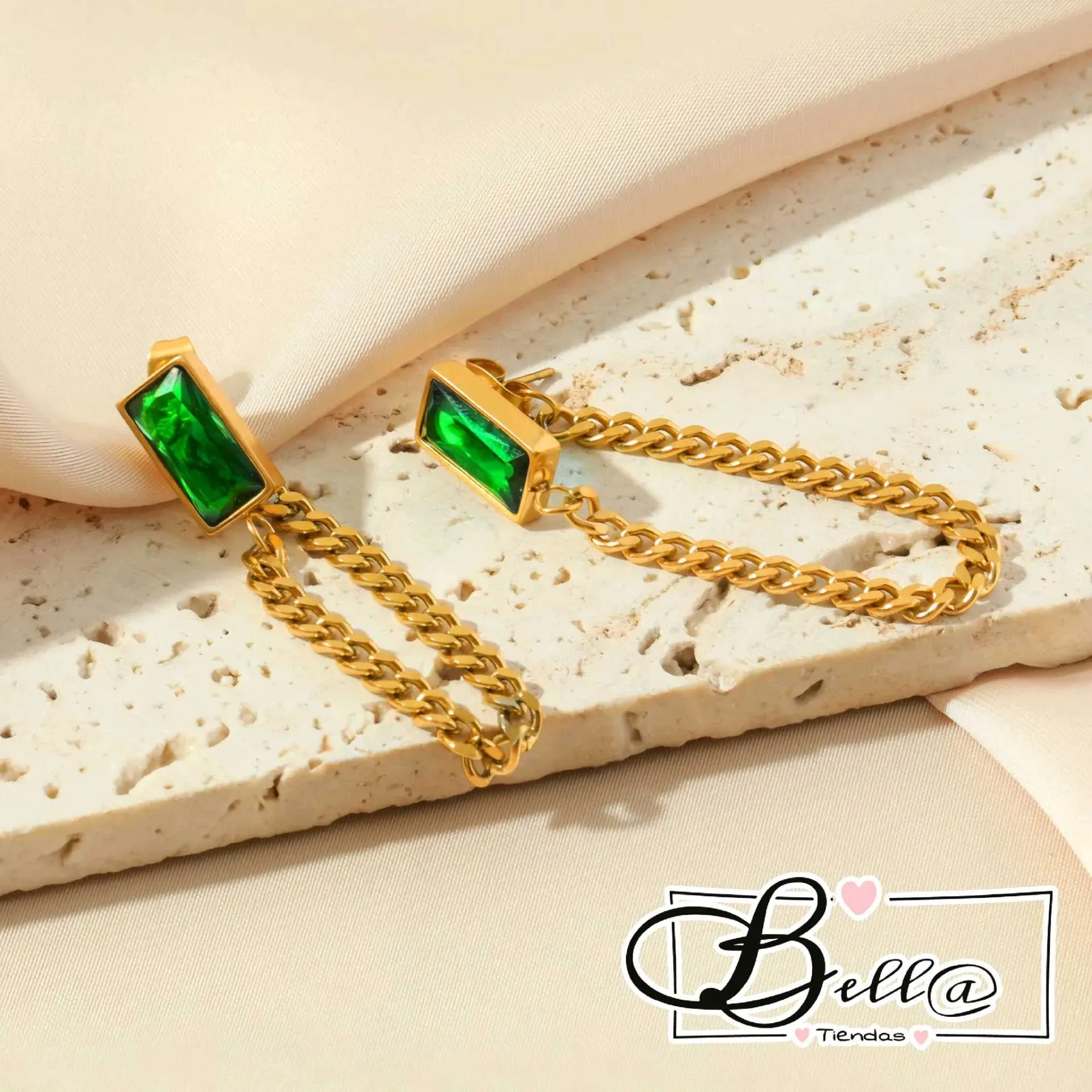 Zarcillos con Placa Verde y Cadenita al Cierre 💚✨️